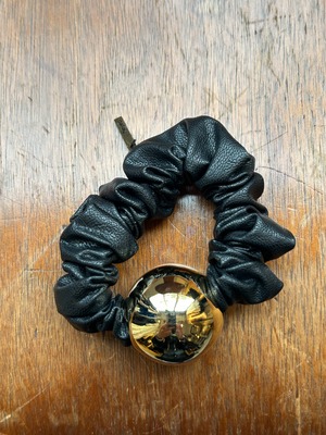 フェイクレザーにゴールドのメタルボールをあしらったシュシュ。
