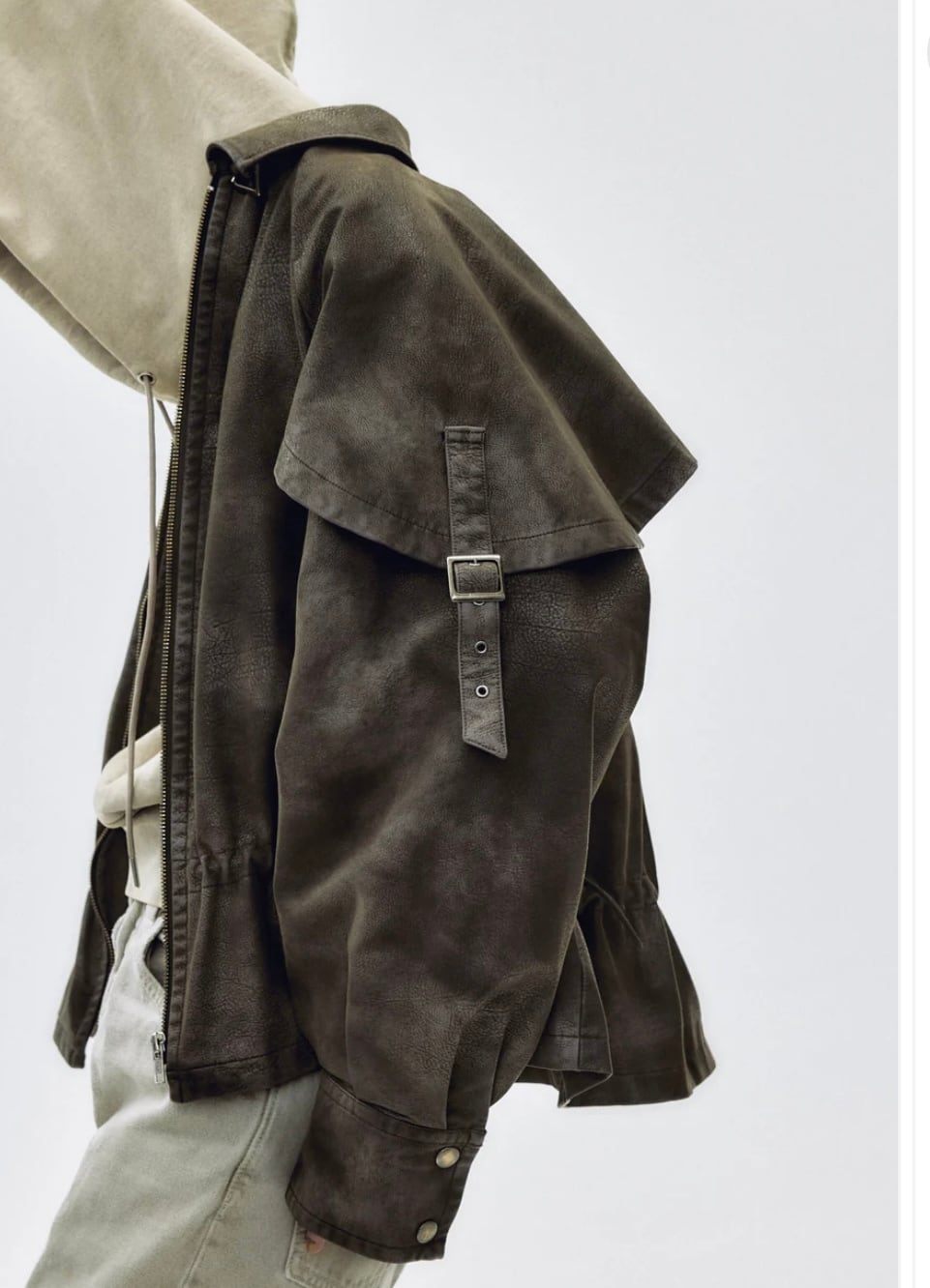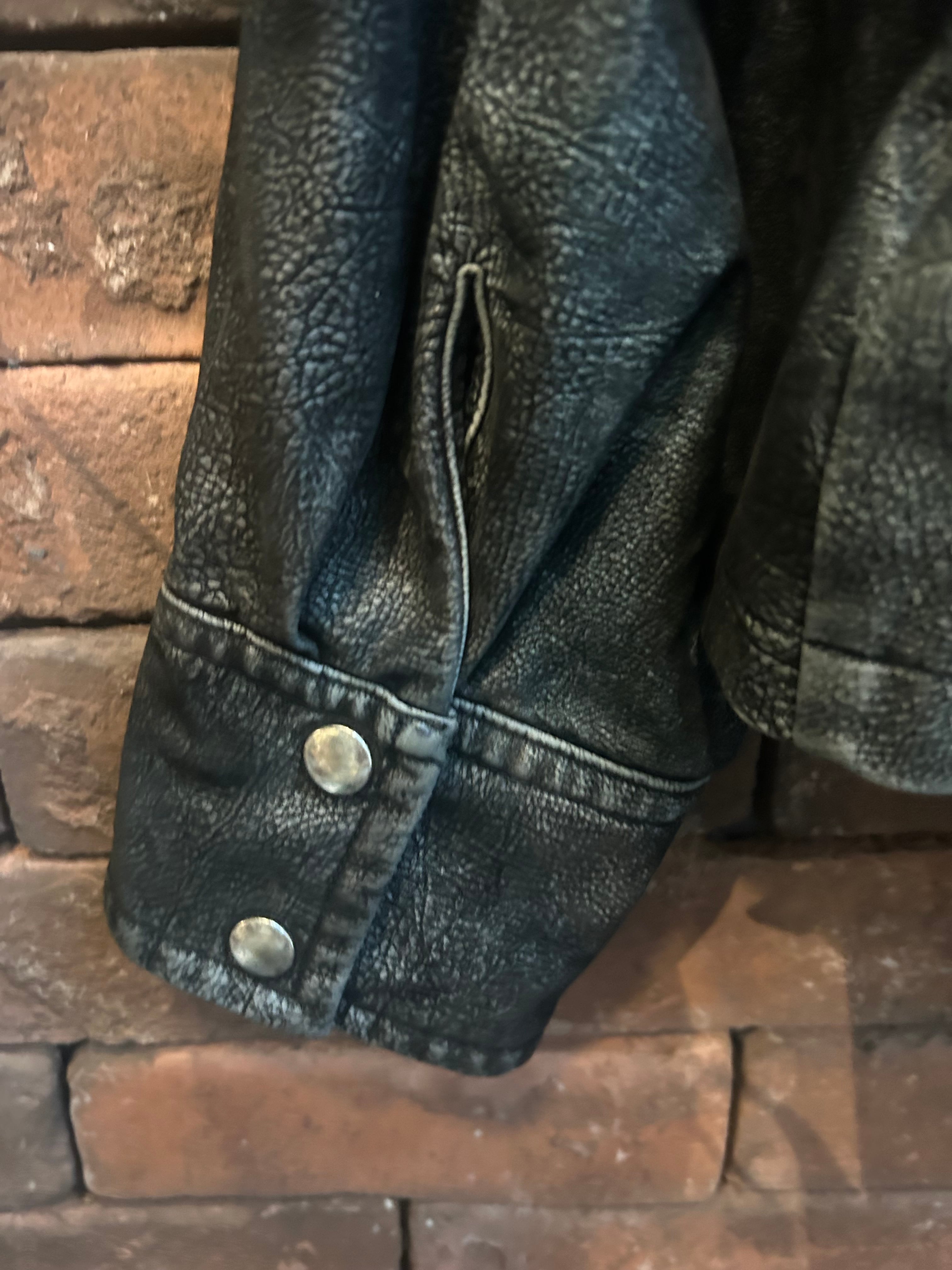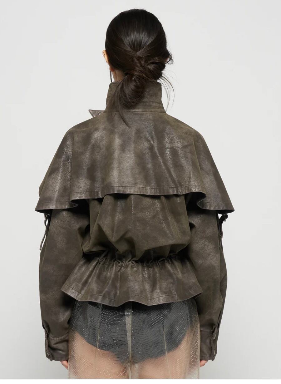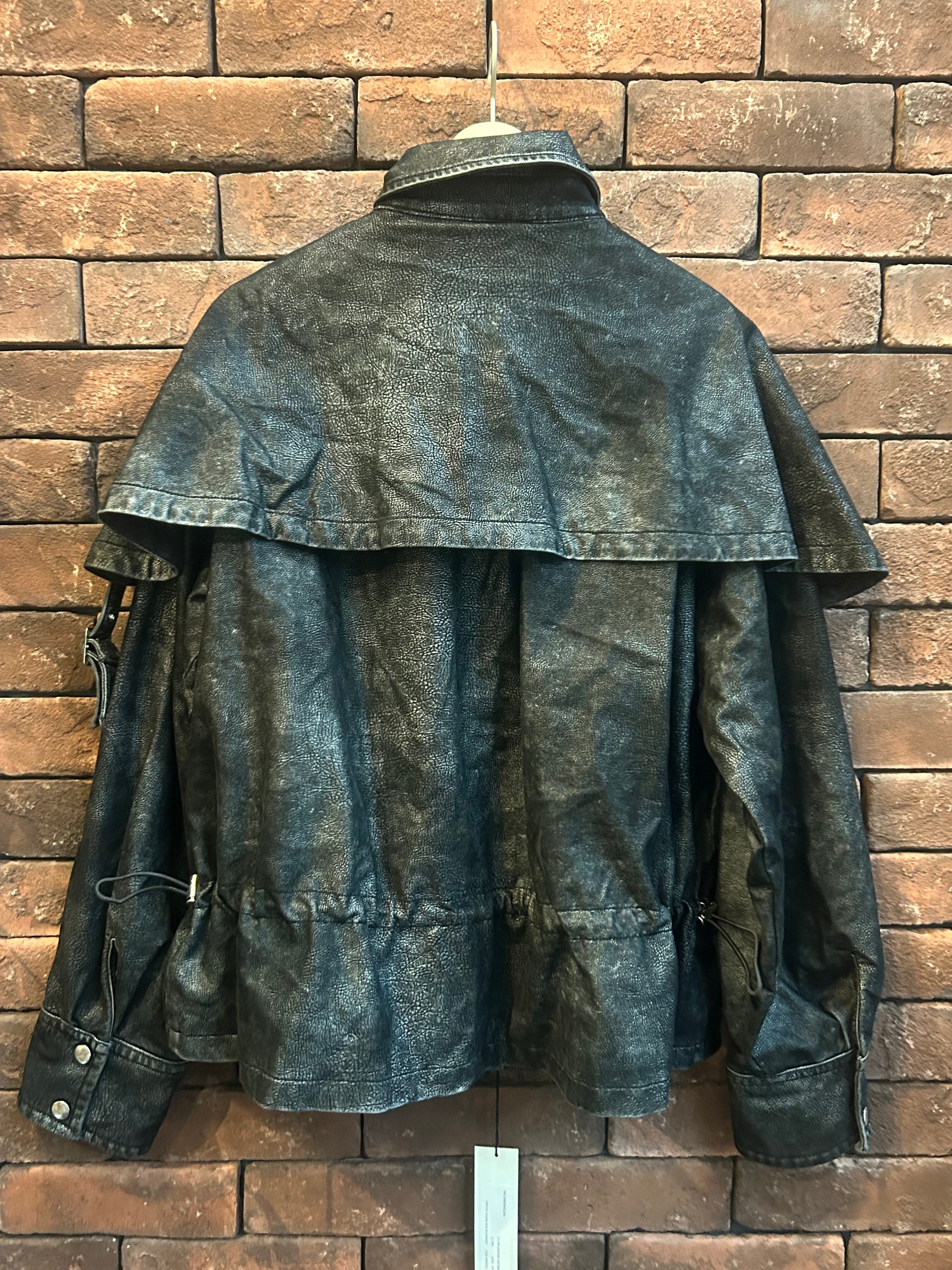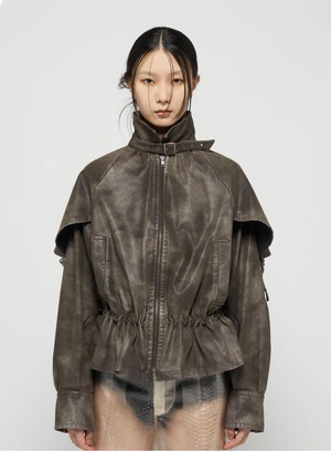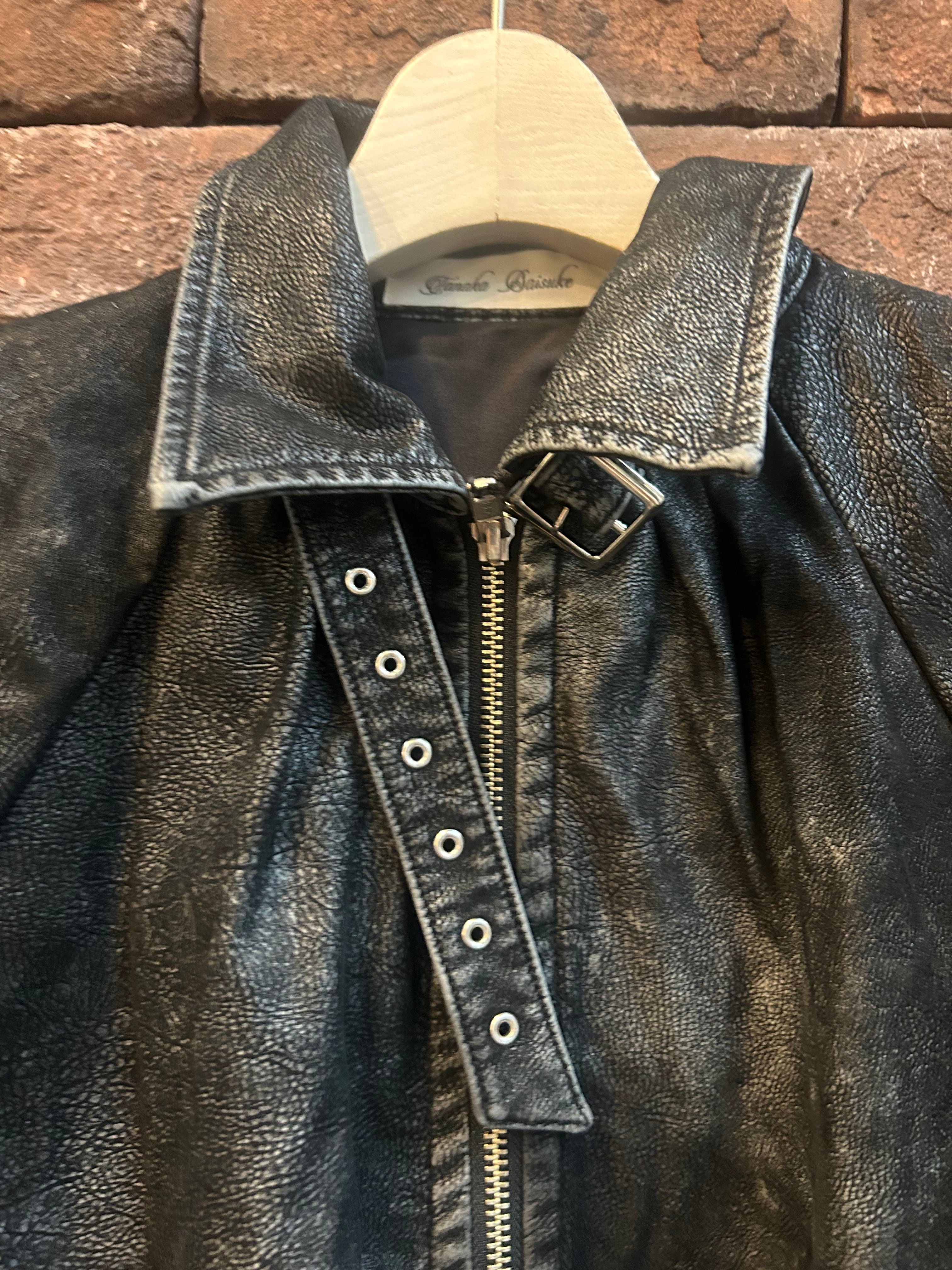tanakadaisuke drawstring fade leather blouson Charcoal brown