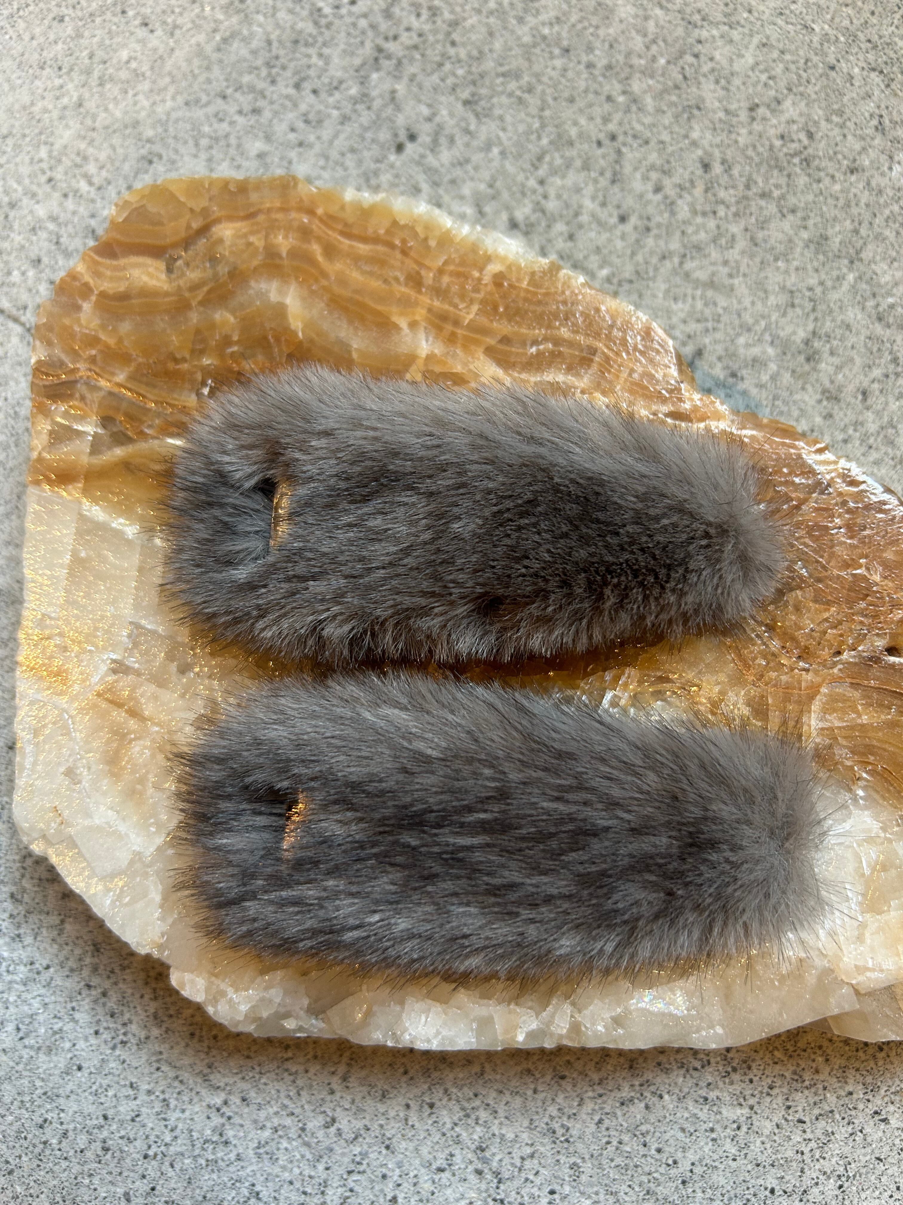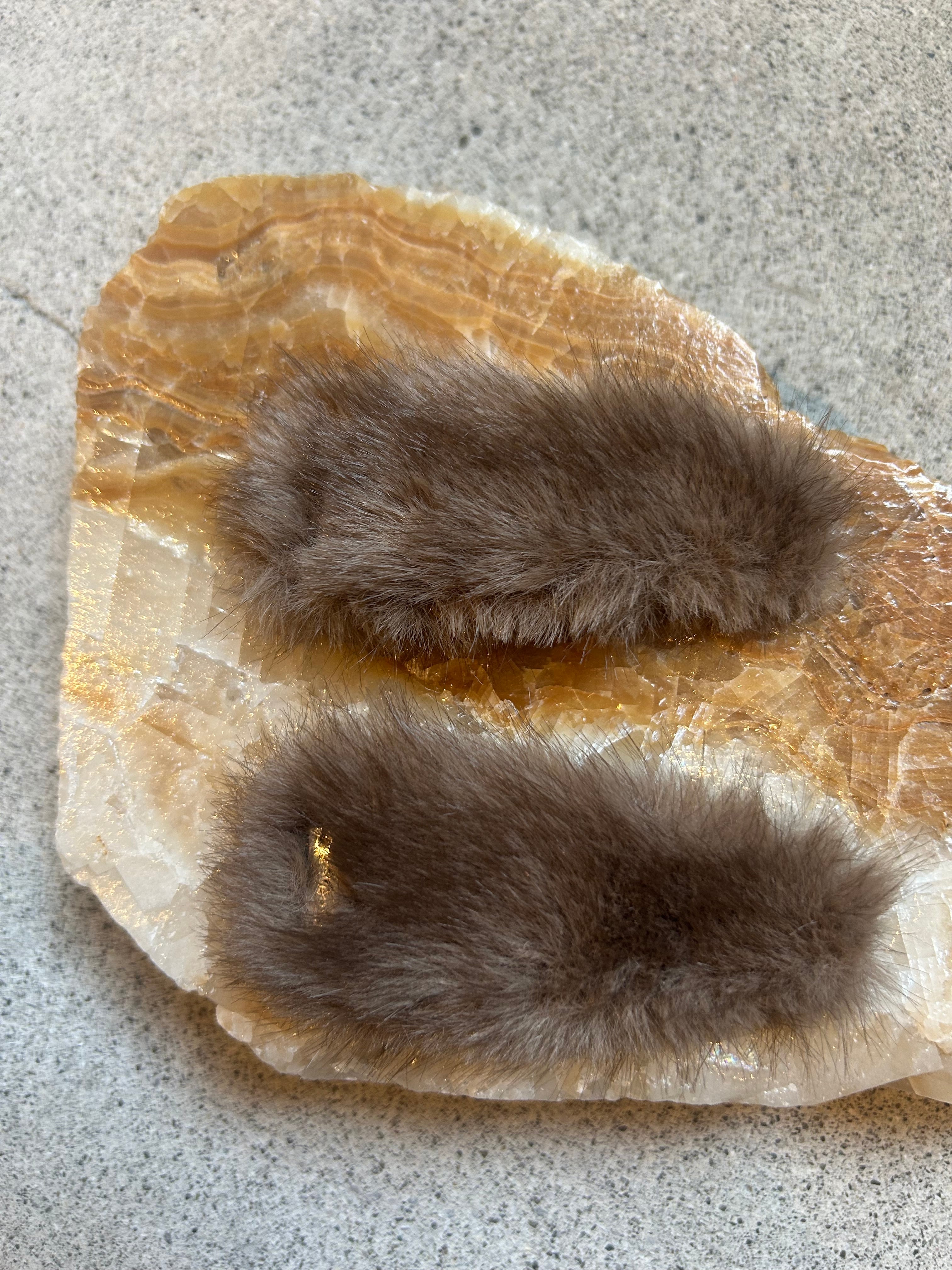 フェイクミンク素材を使用した、ボリューム感のあるヘアクリップ2本セット