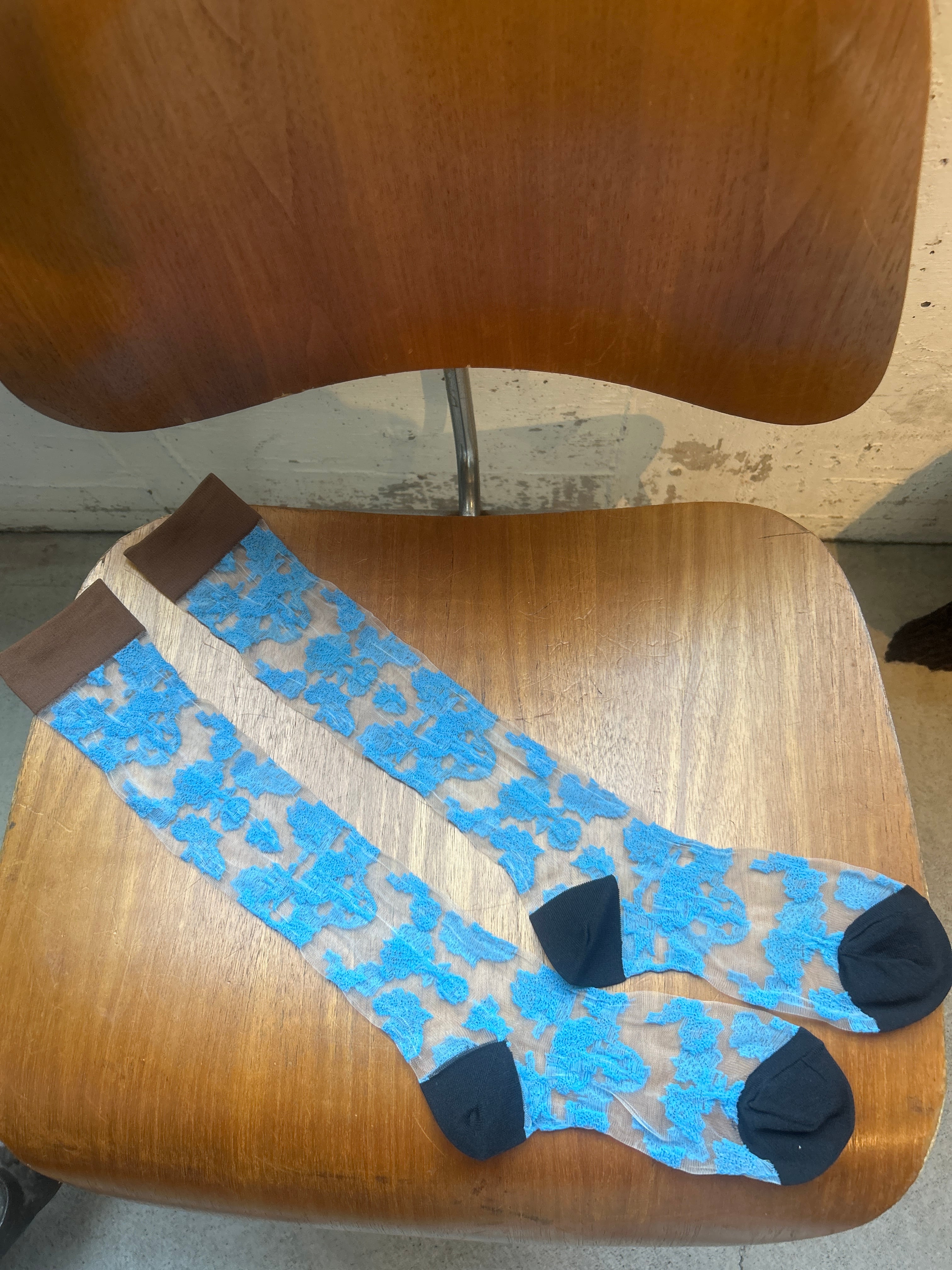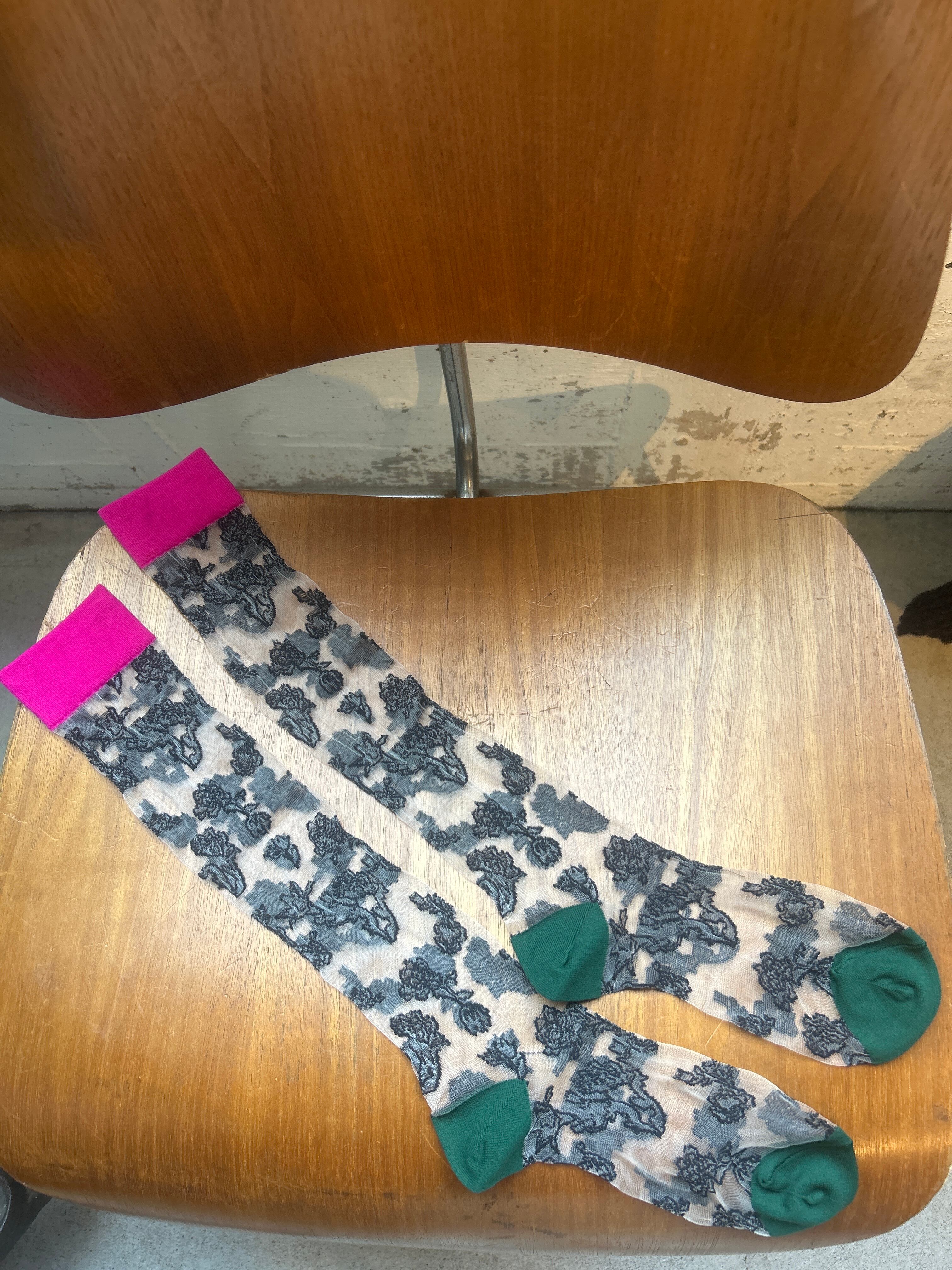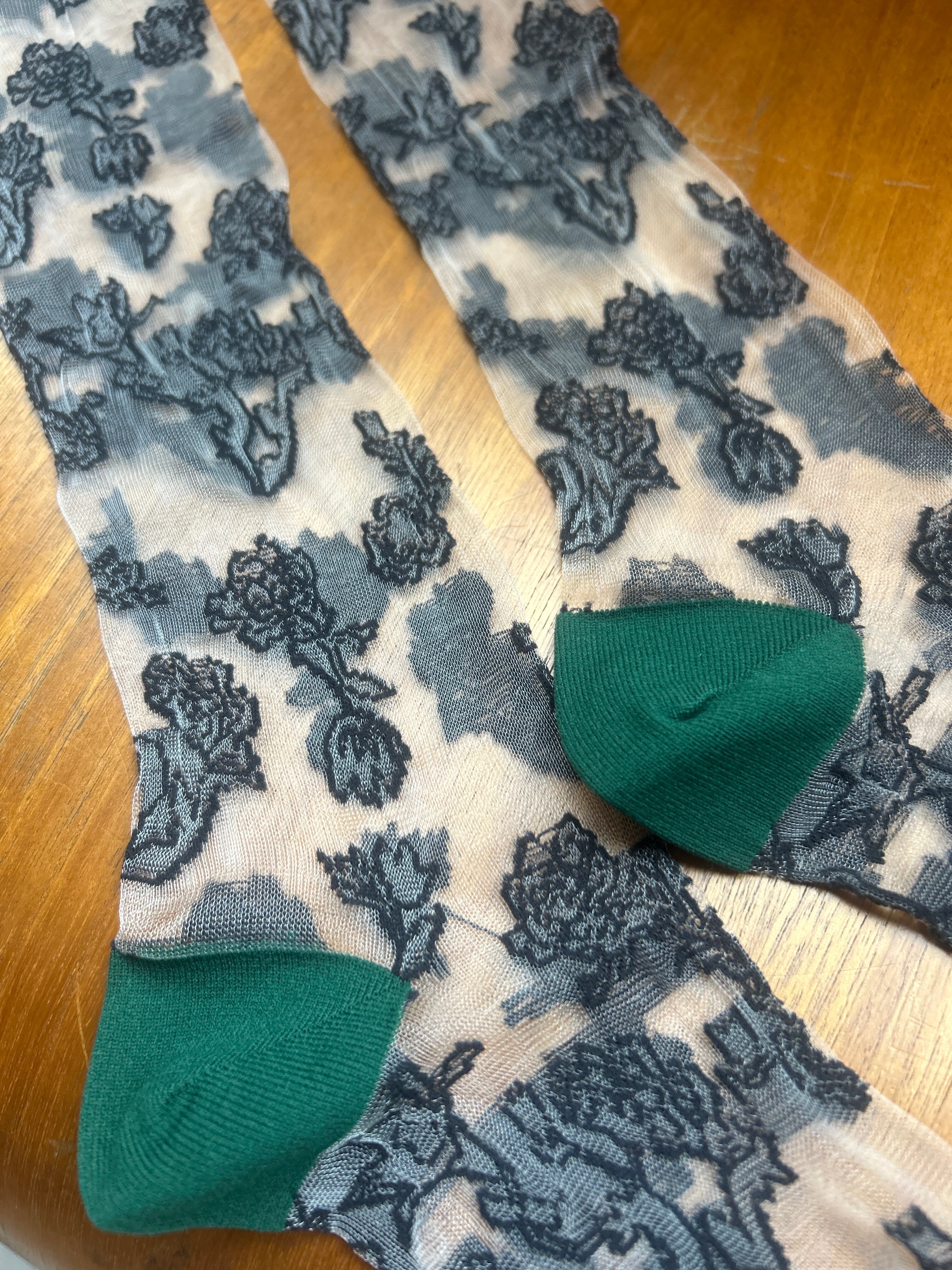 繊細な刺繍が施された花柄デザインが魅力のシースルーソックス