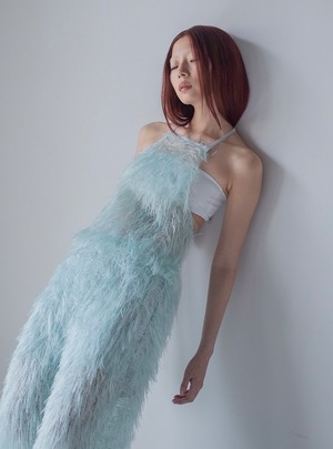 フェザーの揺れやオーガンジーの適度なシアー感、オケージョンにも普段使いにも着ていただけるデザインです