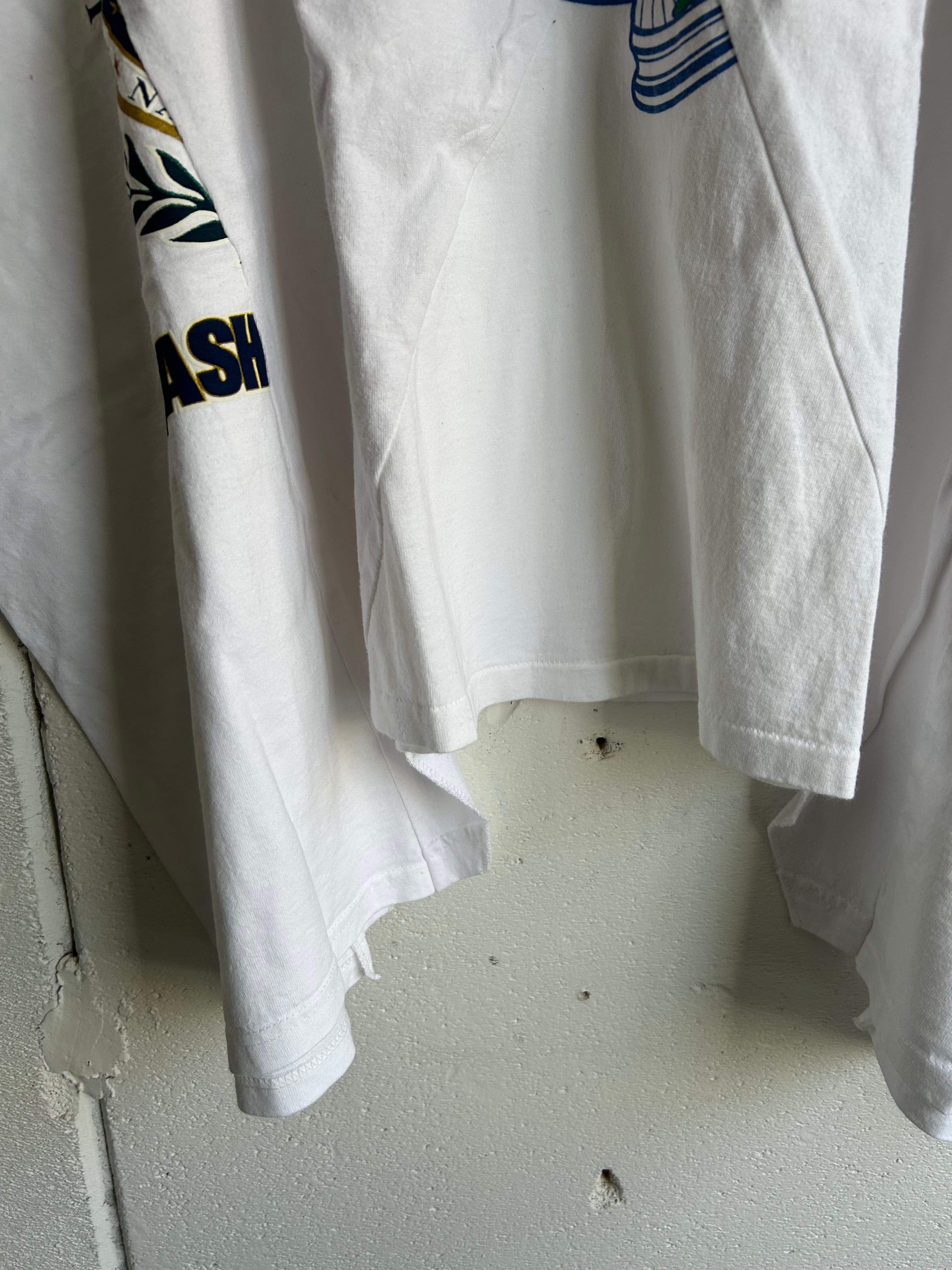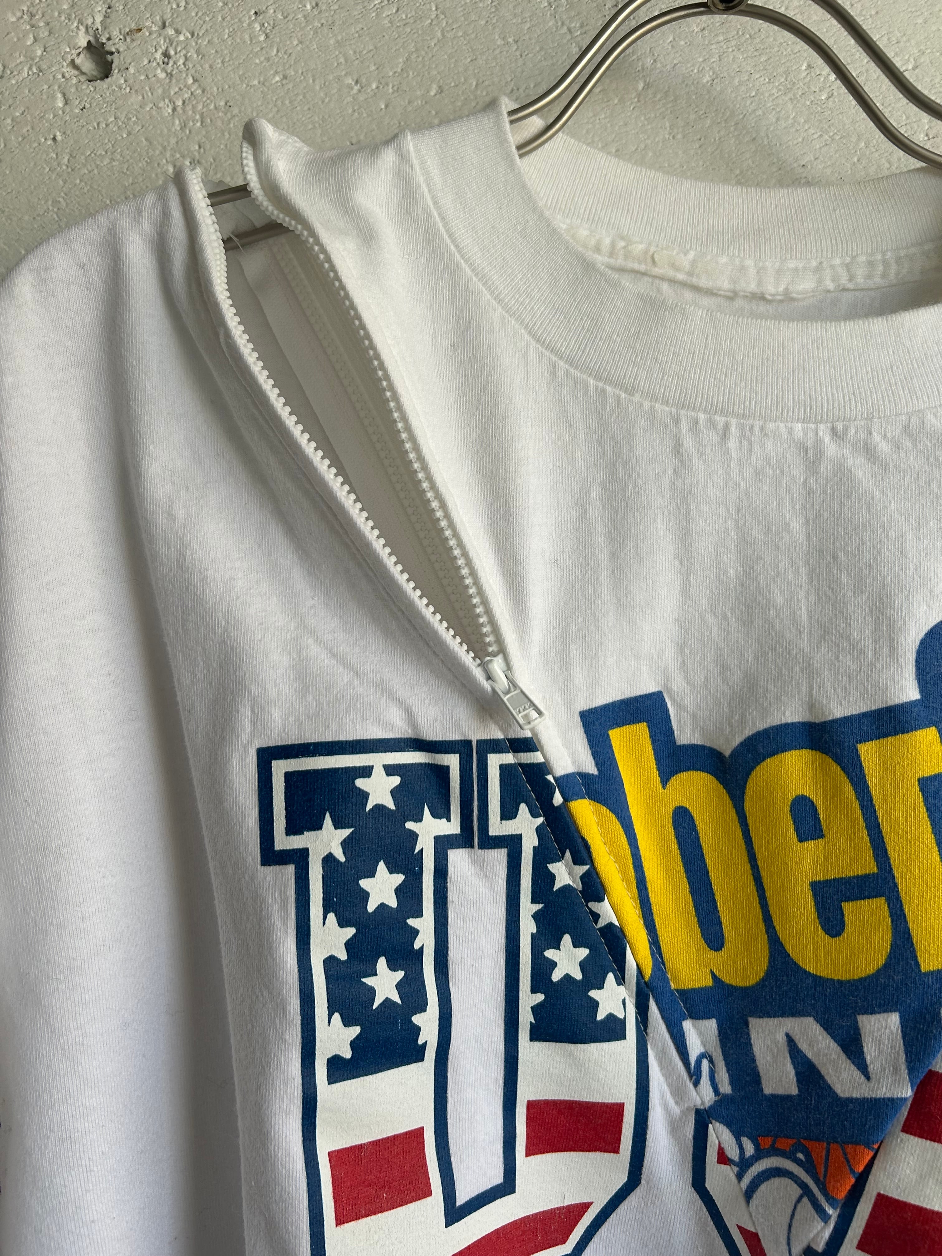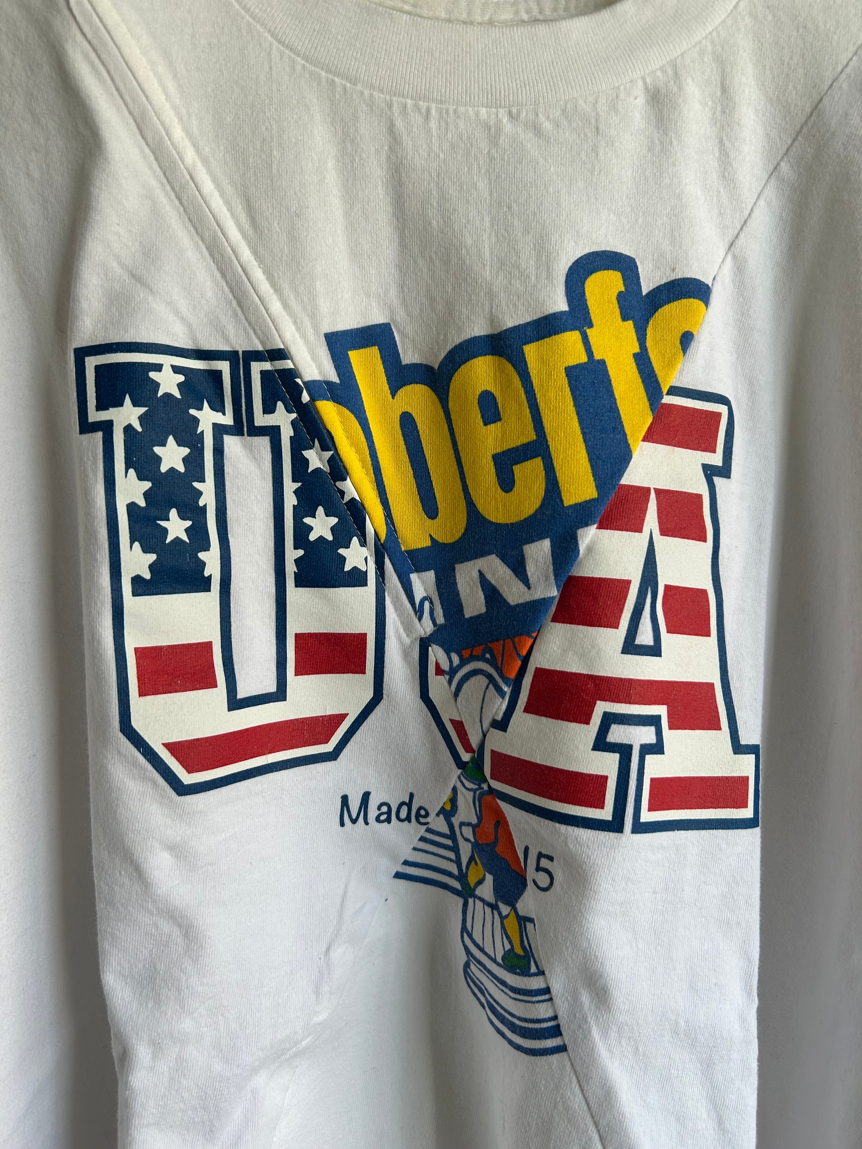 身頃外側にもう一枚のTEEを繋ぎ合わせてワイドシルエットに