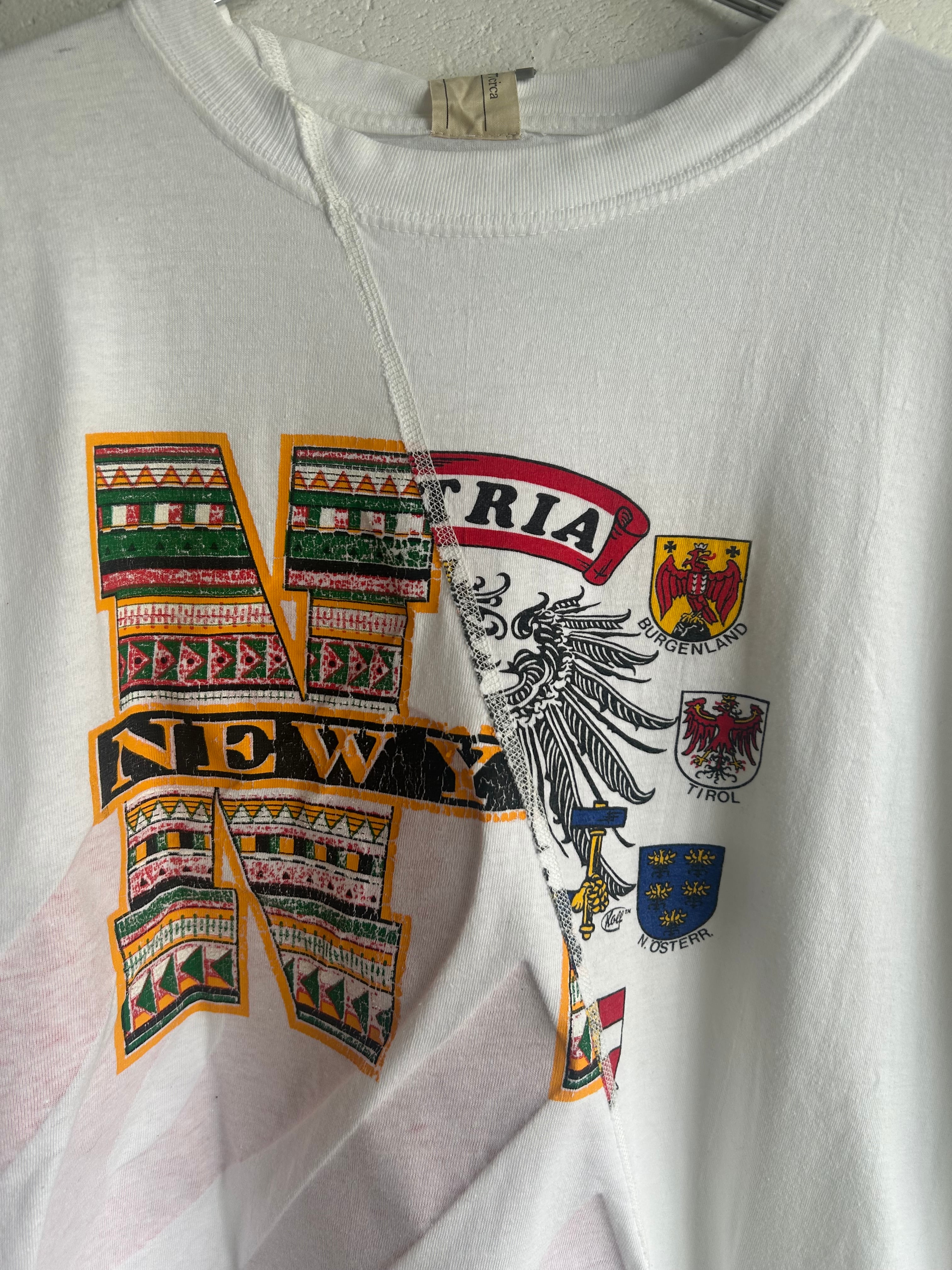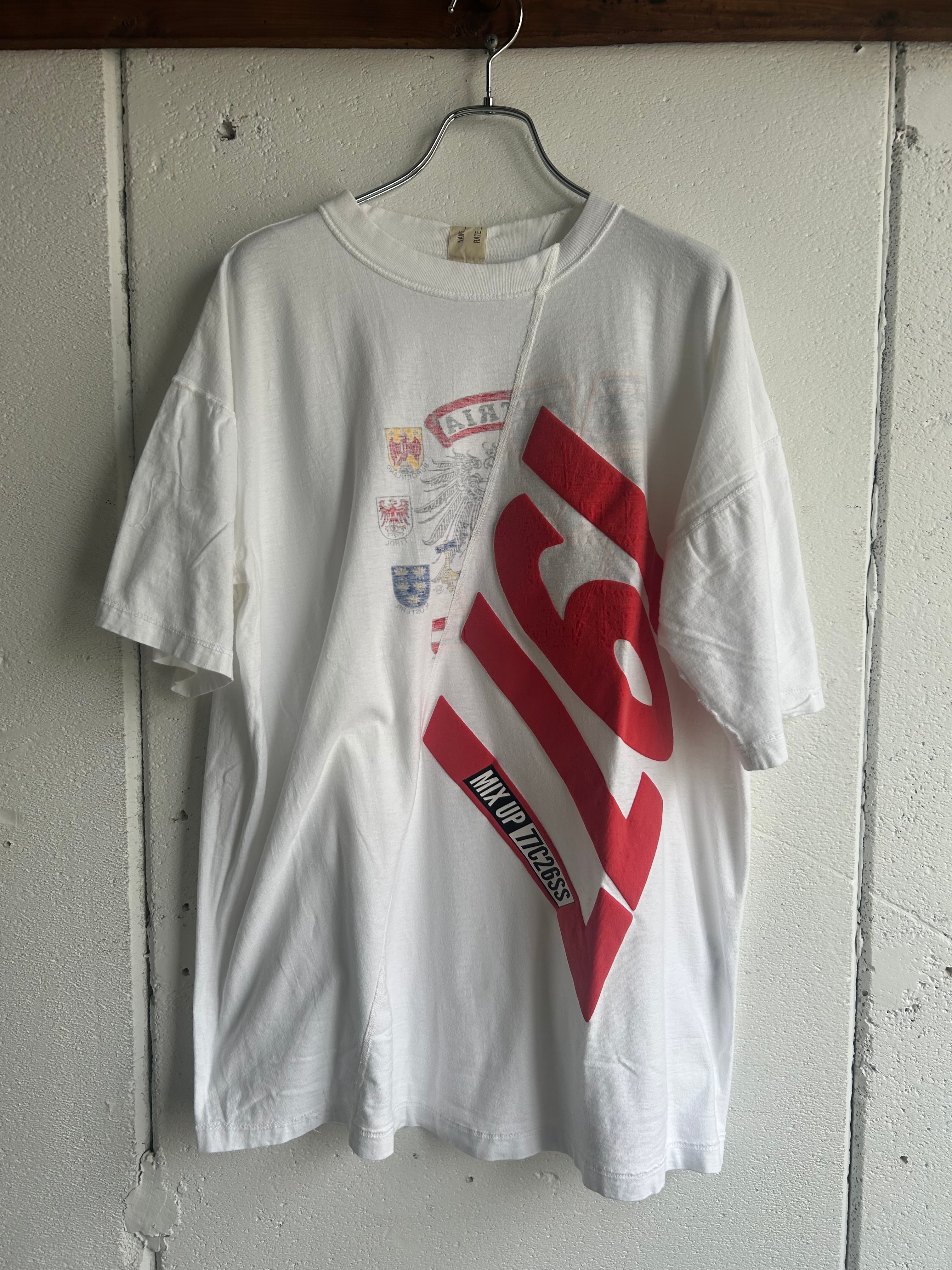 USEDのプリントTEE2枚を組み合わせてバイアスに切り返して縫製