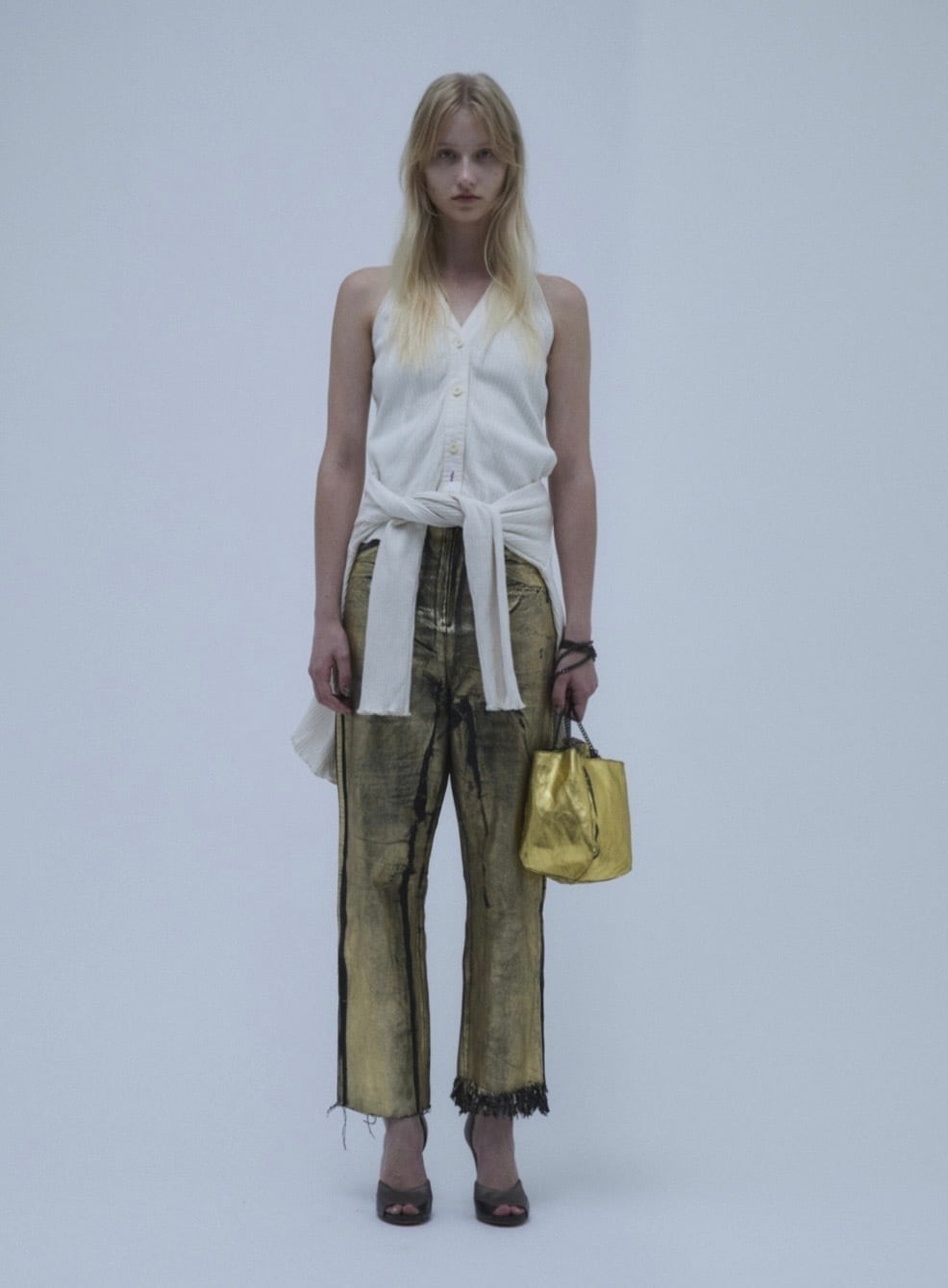77circa coating fringe denim pants