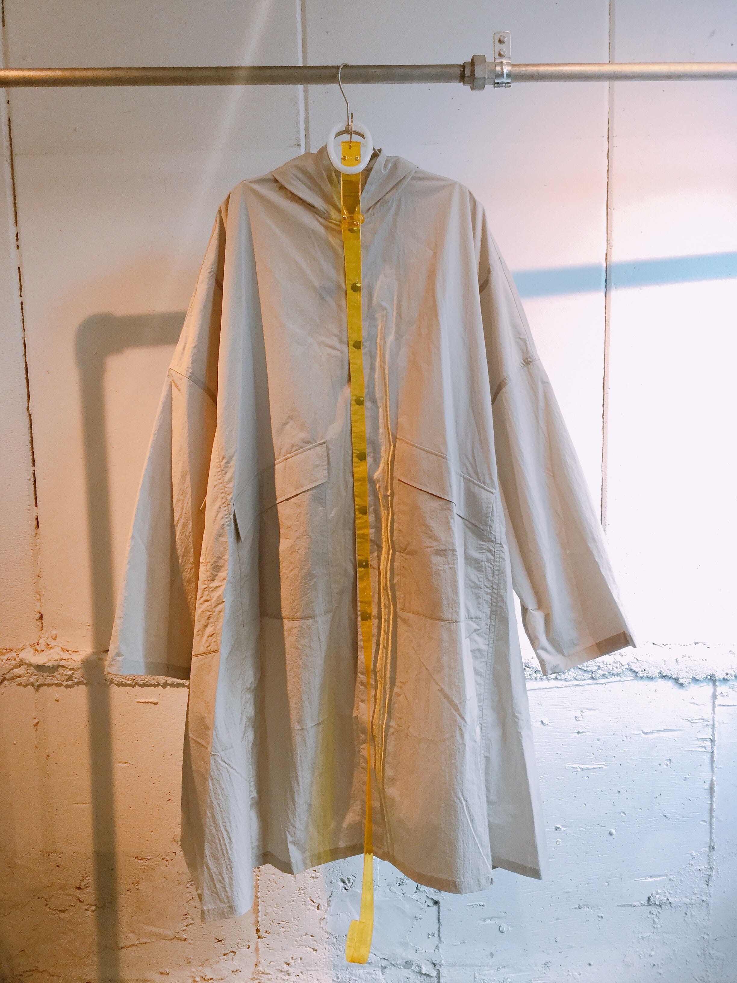 ベンチコート2枚を組み合わせてワイドシルエットに再構築したコートです