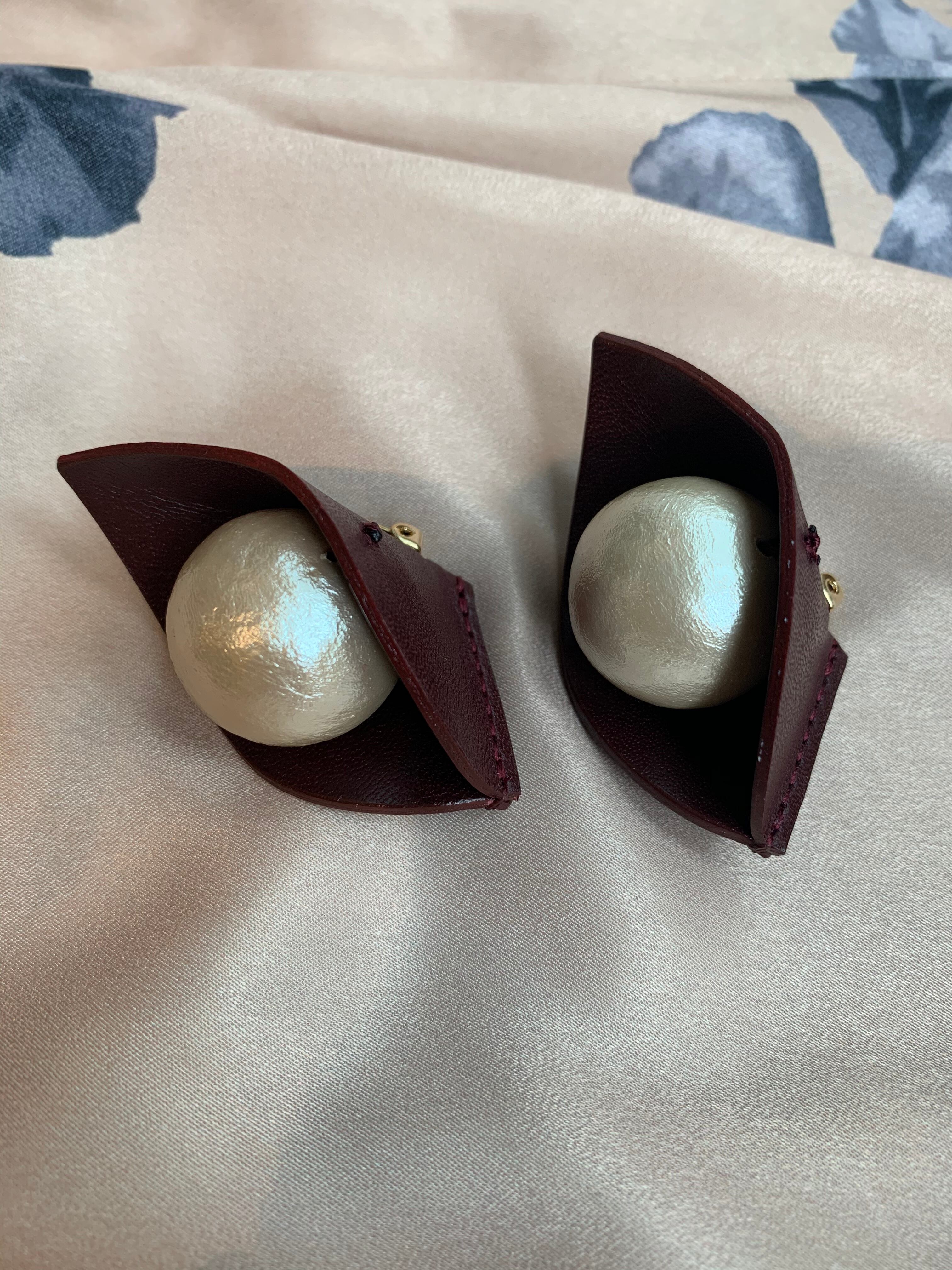FUMIE=TANAKA leather pearl earring (BROWN)