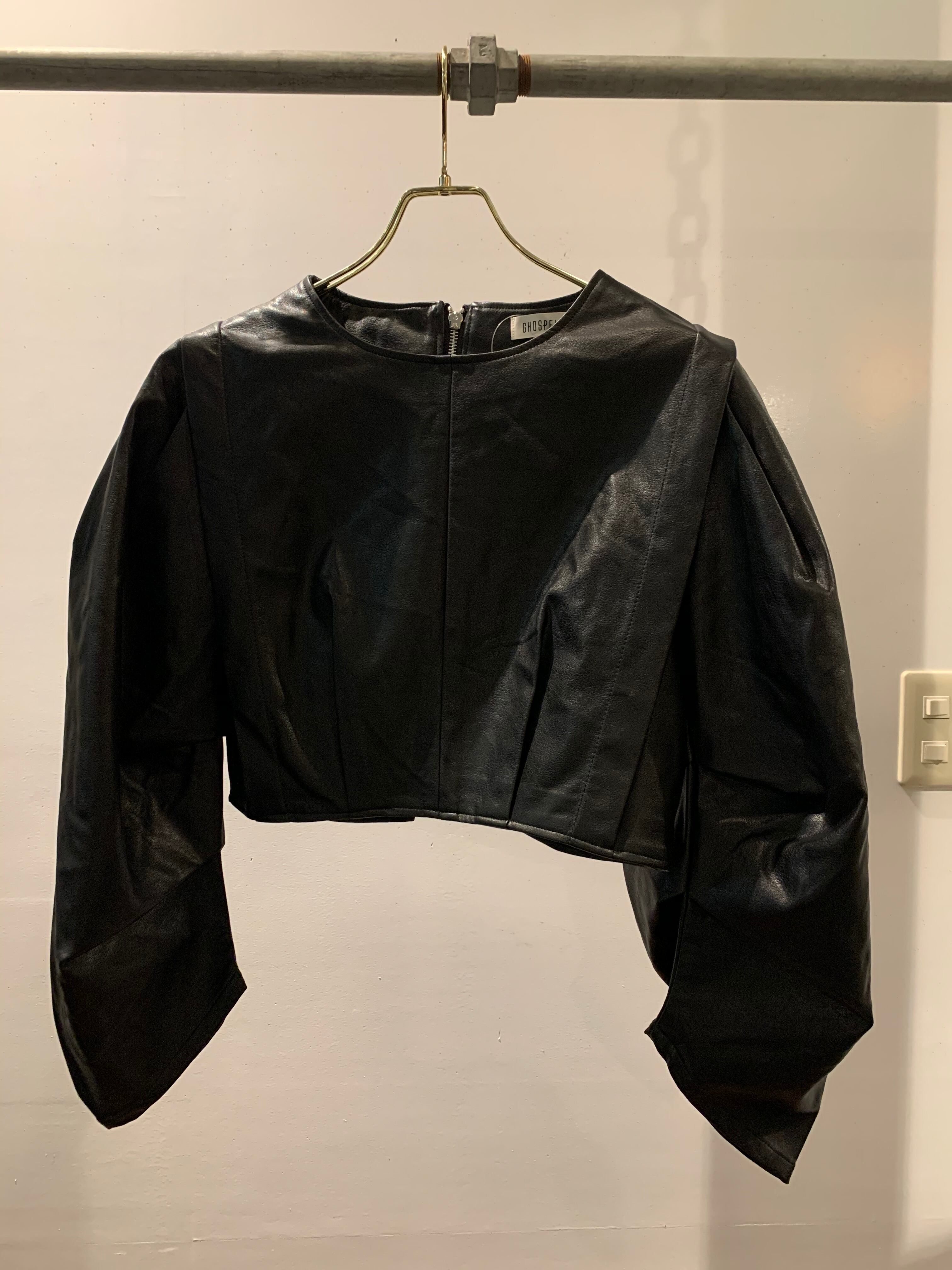 GHOSPELL   Belanced Form Faux Leather Top