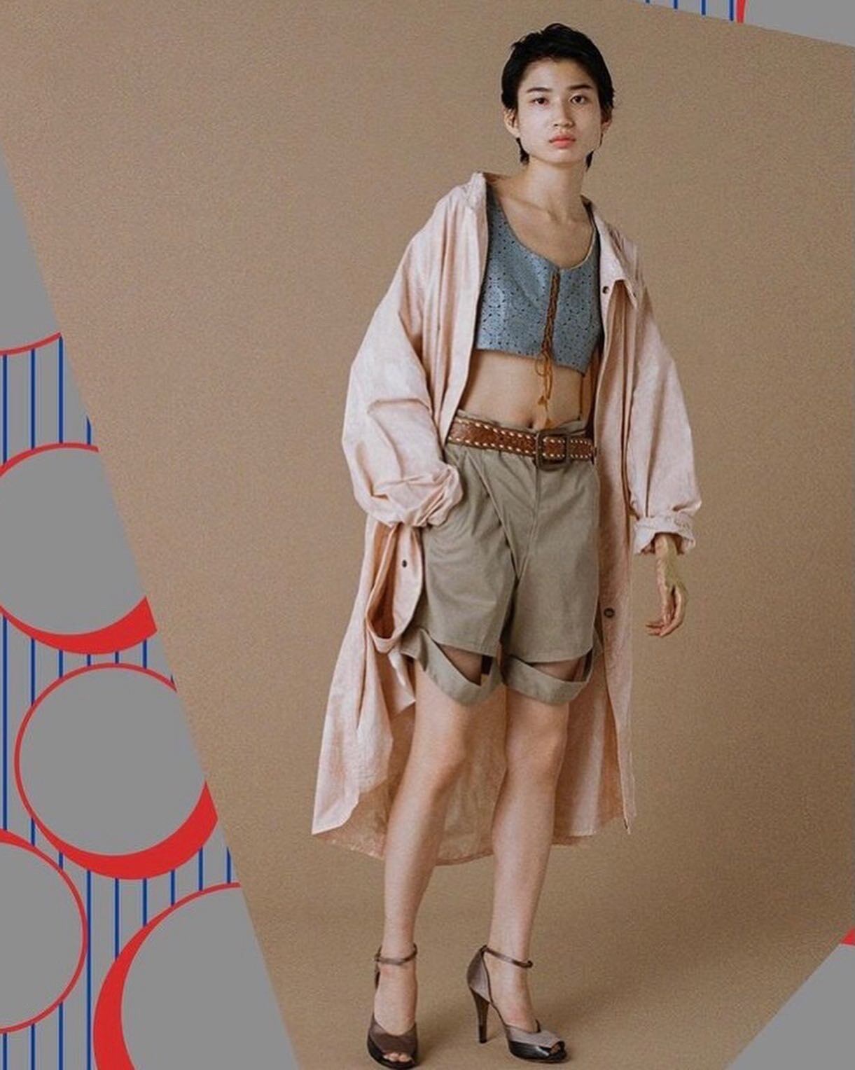 身頃左右中心とした裾のスナップボタンを留めて裾をめくれます
