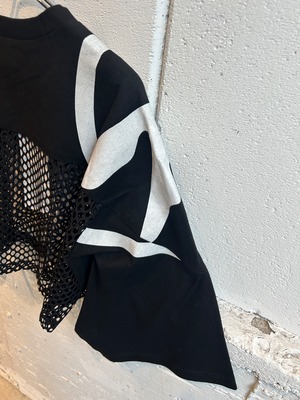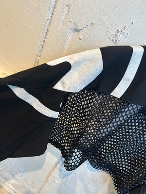 身頃上にUSEDのプリントTシャツ2枚を左右で切り替えて使用